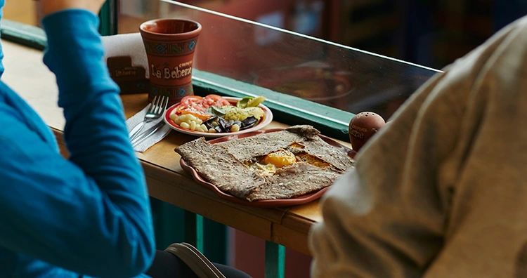 “Diners rave about the crepes in this Marseillaise-owned cafe, crafted with fusion ingredients like caramelized onions, Andean cheese, mushrooms and béchamel.”