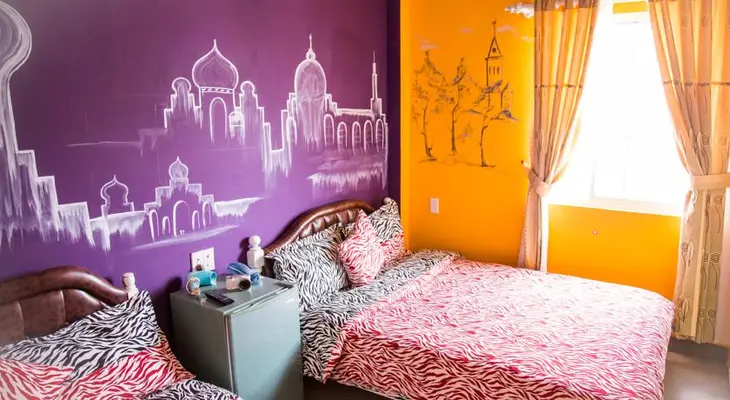 "With walls covered with creeping vines, Parisian scenes and jungle imagery, and patterned quilts on beds, this is by far Dalat's most colourful hostel." Full review