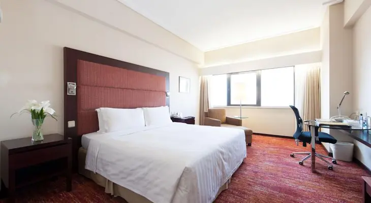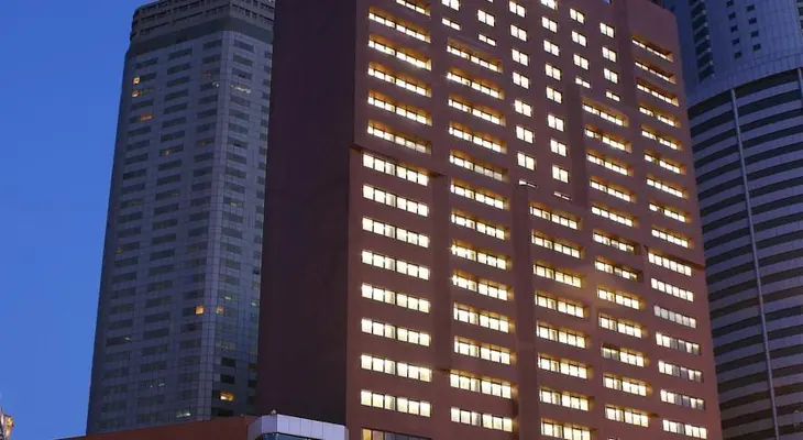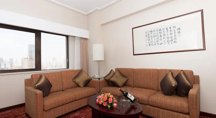 “Four-star luxury in the heart of town next to the train station, overlooking Shengli Square. ¥730.”