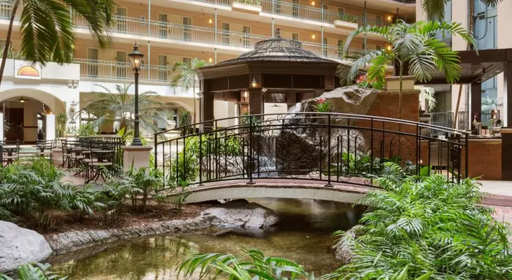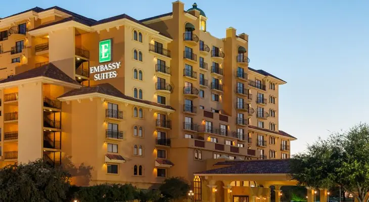 “One of the more interesting and visually appealing properties from the Embassy Suites chain, this Mediterranean-style hotel is bursting with extras for its guests.”
