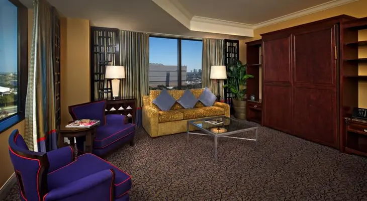 “The rooms are standard, but the Anatole has seven bars, a nightclub, and a piano bar to keep you entertained. The public spaces feature a massive collection of fine Asian arts and antiques.”