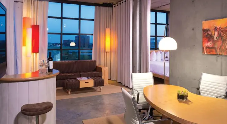 "Perhaps the hippest hotel in Irving/Las Colinas, this boutique property has been designed with an emphasis on leisure and luxury... Free shuttle transportation is offered within a five-mile radius."