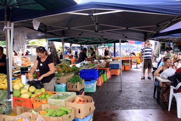 Food is the main attraction here from Thai, Sri Lankan, Indian, Chinese and Malaysian to Brazilian, Greek...arts and crafts stalls bulge with handmade jewellery, fabulous rainbow tie-dyed clothes — Lonely Planet