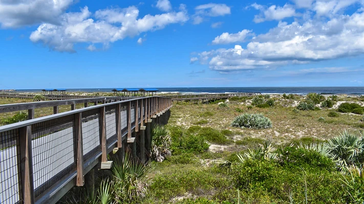 "In this park, on a barrier island at the northernmost tip of New Smyrna Beach peninsula, 1½ miles of boardwalks crisscross sand dunes and delicate dune vegetation to lead to beaches and a fishing jetty" Full review
