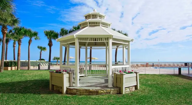“The 123-room oceanfront Holiday Inn Hotel & Suites Daytona Beach is a budget-friendly three-pearl property within a five-minute drive of the legendary boardwalk.”