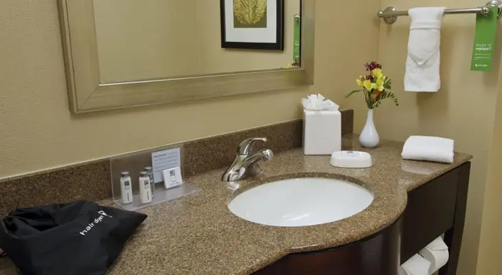 “A great value for downtown Denver, the mid-range Hampton Inn and Suites Denver-Downtown is a clean chain hotel in the North Capitol Hill area, within a 10-minute walk of 16th Street Mall.”