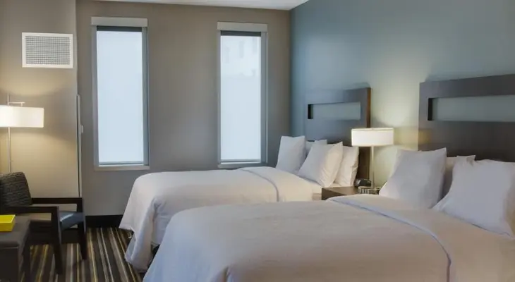 “Sharing a 12-story building with the Hilton's Homewood Suites, this four-pearl, 120-room Hampton Inn is in a prime downtown location, within a block of the Convention Center and 16th Street Mall.”