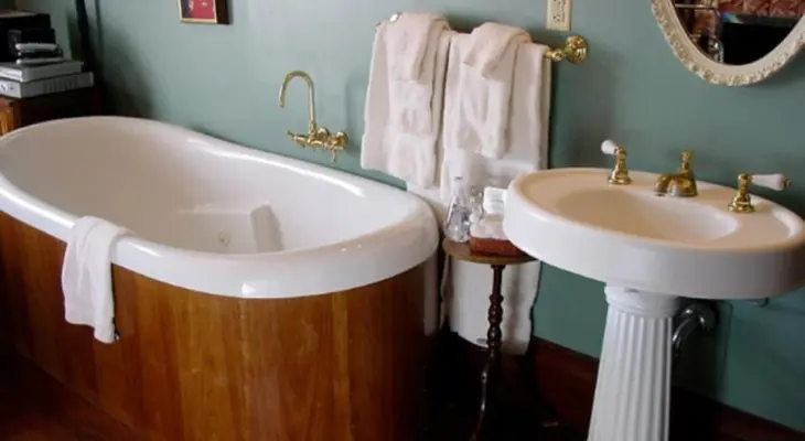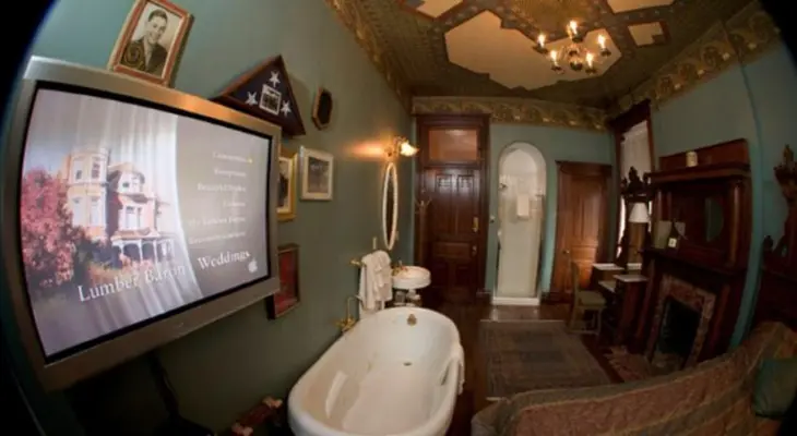 "Because this is the former home of a Victorian lumber baron, its a showcase of elaborately carved woodwork both in the public rooms and the antique-appointed suites."