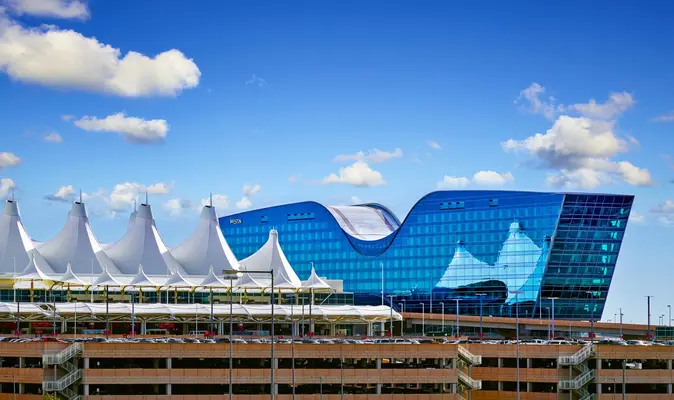 "This sleek, all-glass structure shimmering in the sun hugs the Denver airport like a giant bird spreading its wings over the peaked roof of the terminal." Full review