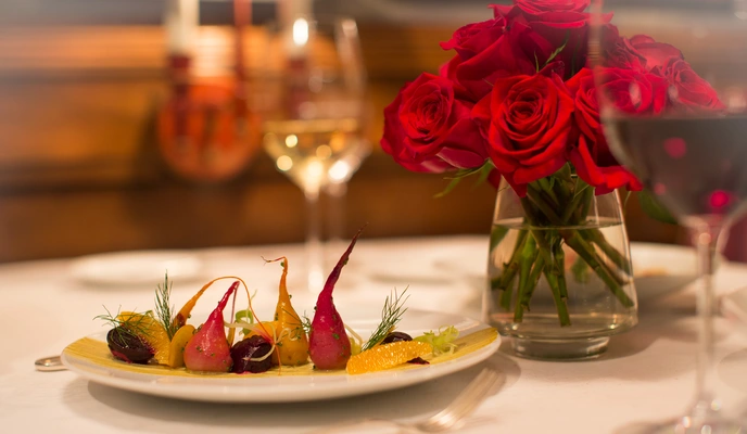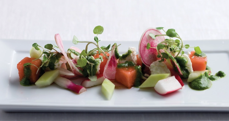 Chef Seidel has produced signature dishes like the Maple Leaf Farms duck breast served with carnaroli risotto as well as grilled arugula that was grown on the chef’s farm. — Travel + Leisure
