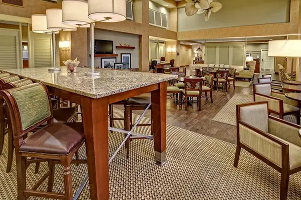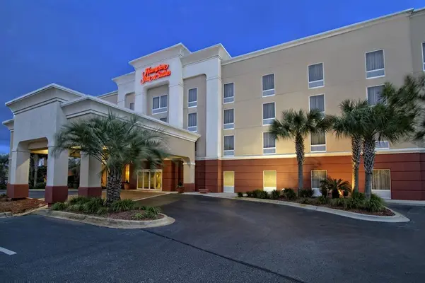 “The Hampton Inn & Suites Destin has 74 chain-like rooms with flat-screen TVs and microwaves.”