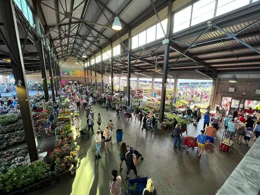 “Produce, cheese, spice and flower vendors fill the large halls on Saturday, but you also can turn up Monday through Friday to browse the specialty shops.”
