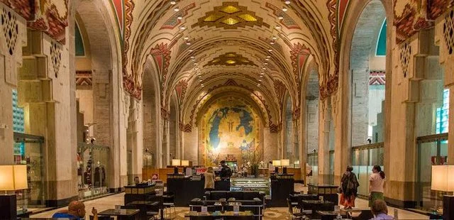 "A majestic 151m-tall Art Deco building, is testament to the city's past opulence. It is decorated with sculptures and mosaics on the theme of Native Americans, and still houses offices." Full review