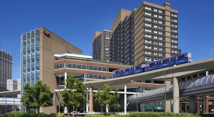 The Marriott is located in the Renaissance Center, and the People Mover connects it to the rest of downtown. — Fodor's