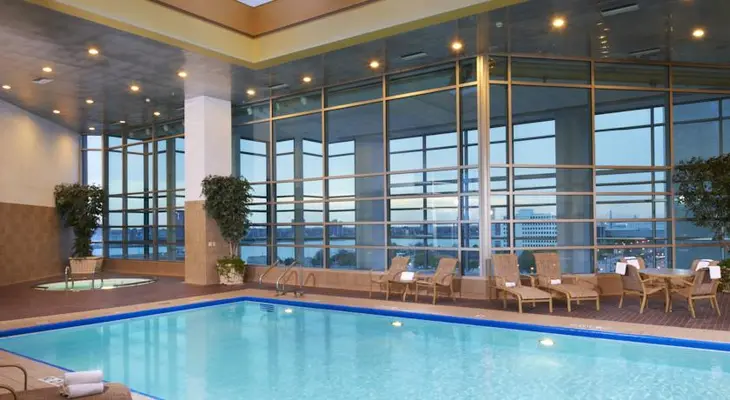 “One of Detroit's more modern hotels, the Courtyard is connected by skyway to the Renaissance Center; the People Mover links the hotel to the rest of Downtown.”