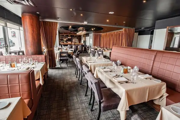 Bold and expansive, the interior of chef-owner Michael Symon's venture affords floor-to-ceiling views of Washington and State Streets and a huge rotisserie revolving next to the dining room. — Gayot
