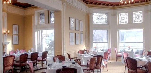 "The Whitney has four main dining rooms on the first floor, including one decorated mainly in pink, as well as outdoor seating on a brick paver patio in the side yard." Full review