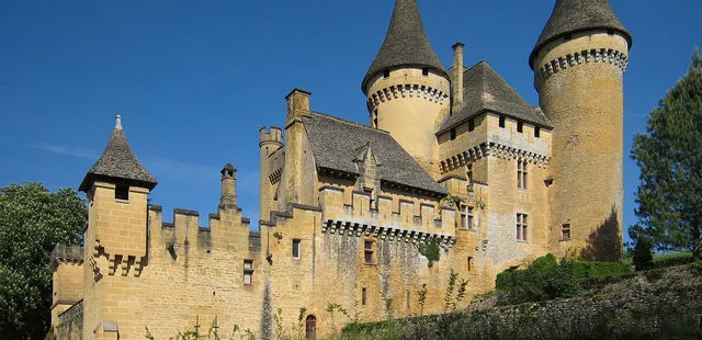 "This impressive turreted château, 8km northwest of Sarlat, was first built in 1270, destroyed in 1358 during the Hundred Years War." Full review