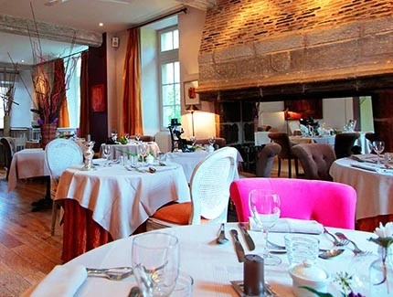 Two monumental fireplaces, contemporary works of art, a terrace under the lime trees. — Michelin Guide