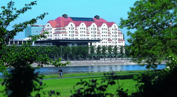 “This elegant hotel on the Elbe River offers direct access to the convention center. Originally built as a storage facility in 1913, it has been transformed into luxury lodgings.”