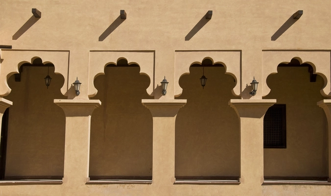 “This renovated 1890 courtyard house, just north of the Spice Souq, once belonged to Sheikh Ahmed bin Dalmouk, the founder of Al-Ahmadiya School.”