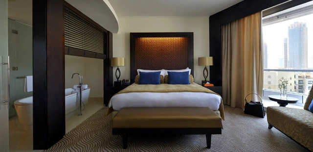 “Occupying an eye-catching modern high-rise virtually in the shadow of the Burj Khalifa, this sleek new five-star is one of the most lavish in Dubai.”