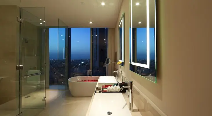 "Floor-to-ceiling windows in every room, free Wi-Fri, free shuttle service to the Dubai mall, walk-in closets, and personalized butler service." Full review