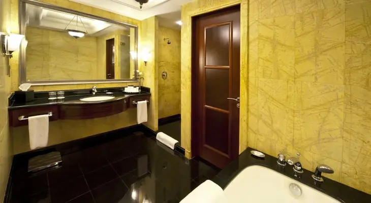 “Though rooms are huge and have all the business-class amenities, there's no alcohol served here.”