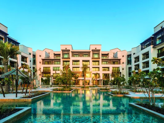 “This beachfront resort comprising two properties and a group of villas re-creates life on Dubai Creek in the late 1800s, complete with waterways, abras (water taxis), and a souk.”