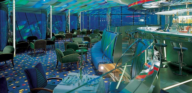 "The interior is gaudy but the spectacular coastal views, especially from the Skyview Bar, make up for it."
