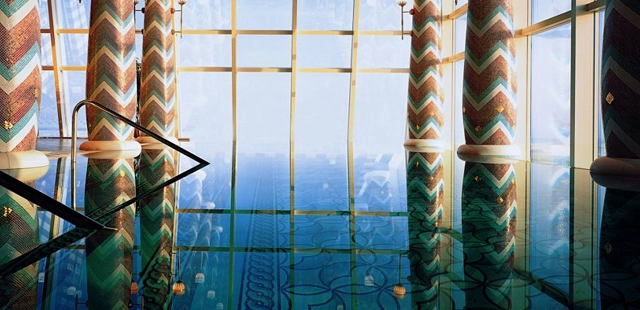 ""Feel like a sheikh in your own palace" at this sail-shaped Dubai landmark, where interiors are embellished with 24-karat gold and the atrium lobby rises some 600 feet." Full review
