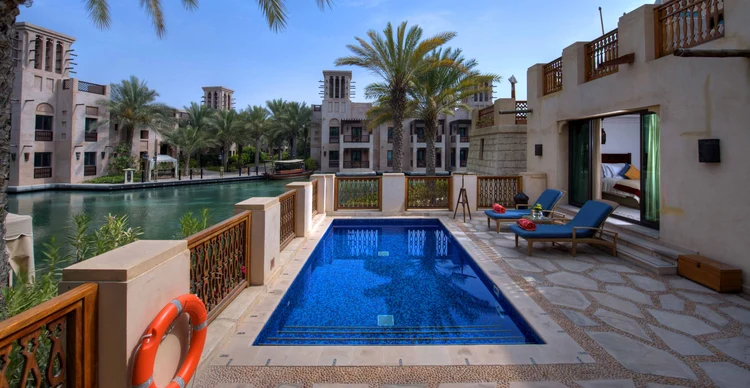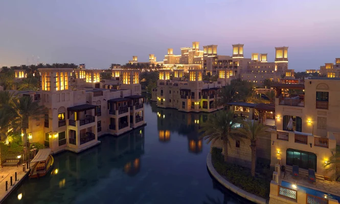 "A more intimate alternative to the Madinat Jumeirah’s big two hotels, Dar al Masyaf consists of a chain of modest, low-rise villa-style buildings scattered around the edges of the Madinat complex."