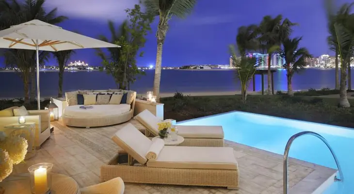 "This resort compound of modern, sea-facing mansions... private villas, and a restaurant wing... backed by a beautiful pool garden occupies the best position on the man-made Palm Jumeirah island." Full review