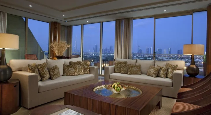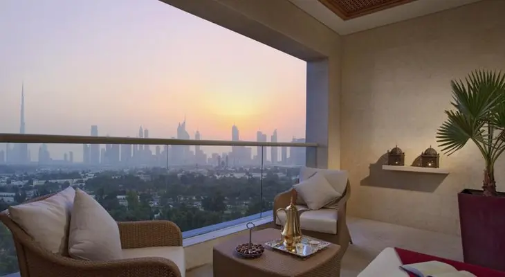 "The external kitsch conceals some of Dubai's largest, most stylish hotel rooms, all 248 loftlike in feel with oversized terrace balconies."
