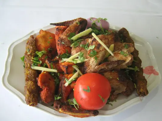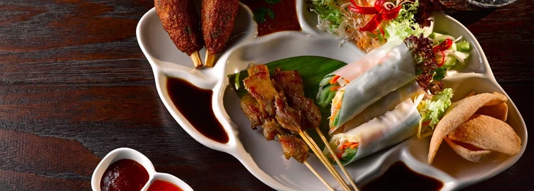 The restaurant has a sumptuous Arabian buffet with several cooking stations, where you can eat your fill of mezze (traditional Middle Eastern small plates) and grilled meats. — Fodor's