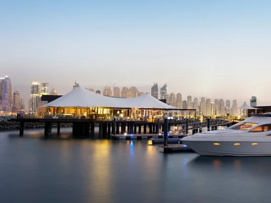 “Accessible by private boat or golf cart, it's all about views and tapas at this chic overwater lounge, which sits elegantly at the end of a jetty of the One&Only The Palm hotel.”