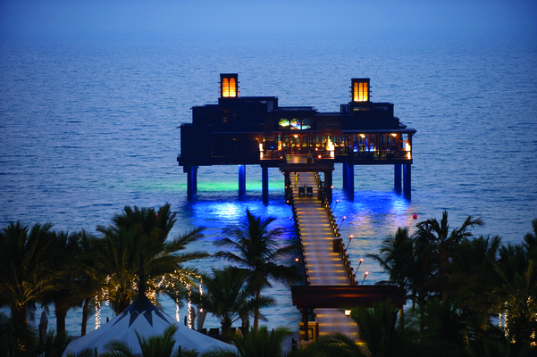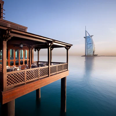 "A fabulous seafood venue at the end of a wooden pier with stunning views of the Madinat Jumeirah resort and Burj Al Arab. Open daily 1–3pm and 7–11.30pm."