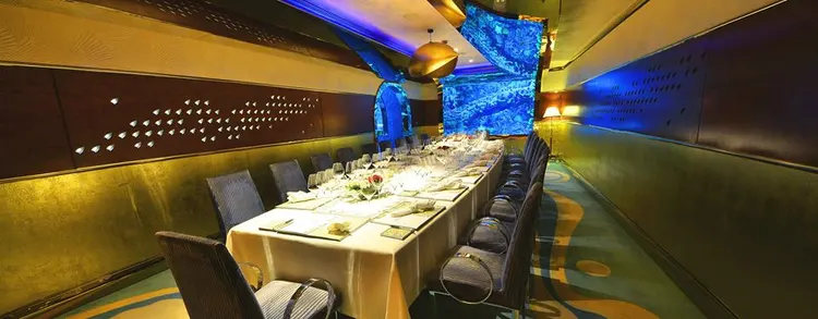 "Perhaps the more appealing of the Burj al Arab’s two signature restaurants, Al Mahara looks like some kind of fantastic underwater grotto."
