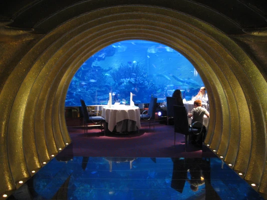 "Centred on an enormous fishtank, this subterranean seafood restaurant is one of Dubai’s most expensive."