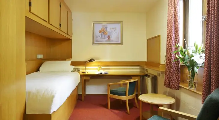 There's a choice of single, twin or double rooms, as well as larger apartments (in Goldsmith Hall, right next door to the campus); not all the rooms are en suite, so make sure you specify what you're after when you book.
