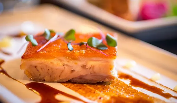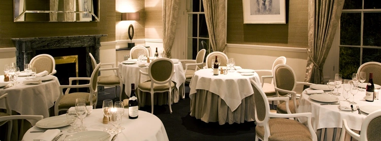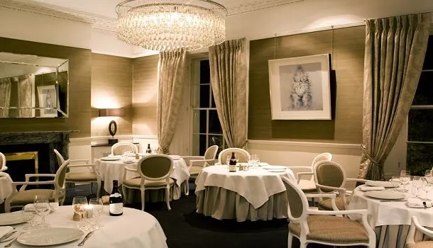 "Have an aperitif in the subtly lit bar then head for the elegant first floor dining room with its ornate cornicing, crisp linen and detailed service."