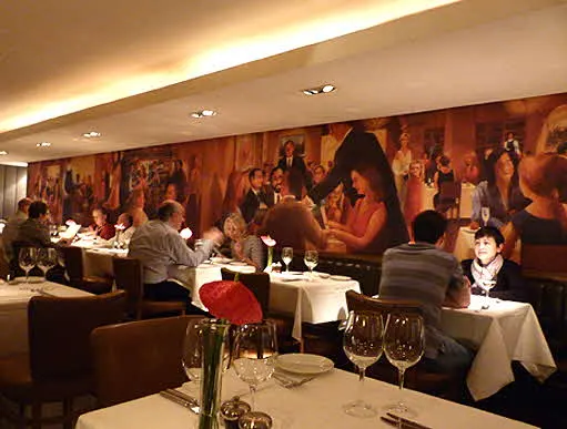 "The comfy room has a warm, clubby feel and a large mural depicts the owner. The well-drilled team present classic Mediterranean dishes and an Old World wine list." Full review