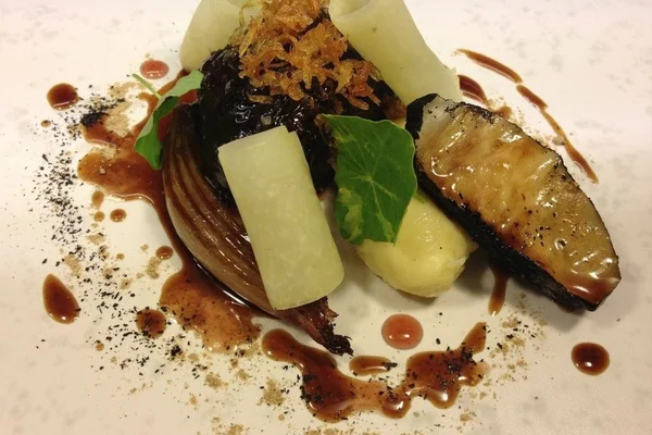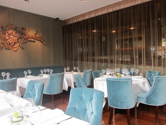 "The elegant dining room of this Michelin-starred restaurant is a touch posh, with turquoise velvet seats and white tablecloths...the four-course, fixed-price menu is proud of its French influences." Full review