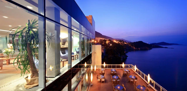 "Built into a spectacular rocky cliff overlooking the sea, this design hotel lies between the Old Town and Gruž harbor. The look is smart and minimalist."