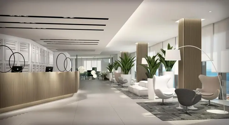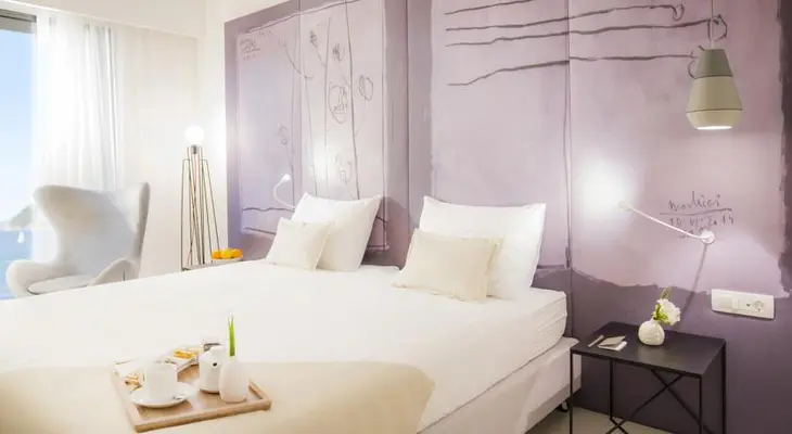 "The minimalist all-white interiors have contemporary furnishing and fantastic sea views. There are 173 rooms, an outdoor pool, a spa, and a big restaurant with a waterside terrace." Full review