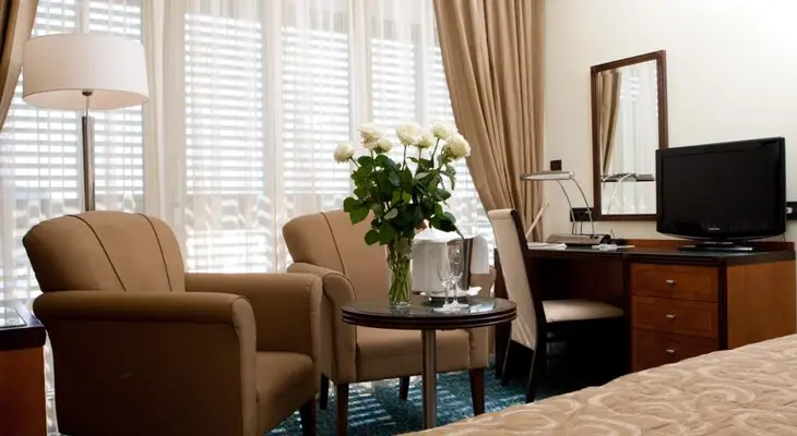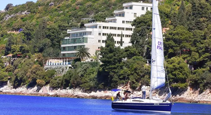 “Built into the hillside overlooking Lapad Bay, this hotel has 47 rooms, a lovely sea view terrace restaurant where breakfast is served, a mini wellness centre and a small outdoor pool.”