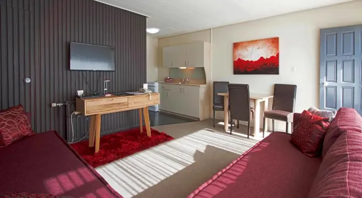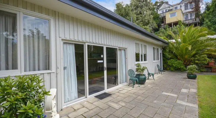 “One block from Dunedin’s main shopping and dining area, these clean and spacious apartments come with full kitchens in one-bedroom units and refrigerators and microwaves in the studios.”