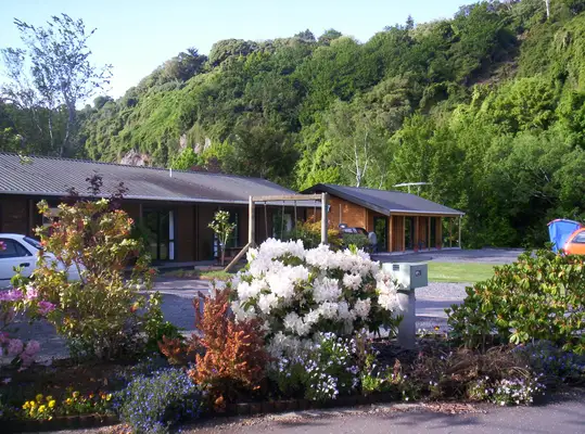 “This holiday park is surrounded by native bush studded with walks, glowworm caves and a creek.”