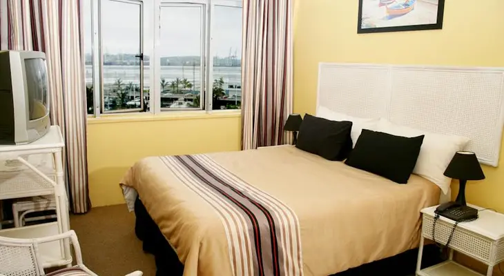 “A modern low-budget option on the edge of the central business district, the Riviera is located opposite the yacht harbour, near the BAT Arts Centre.”
