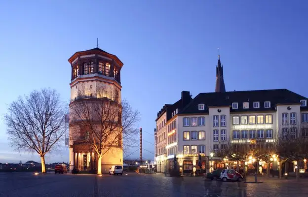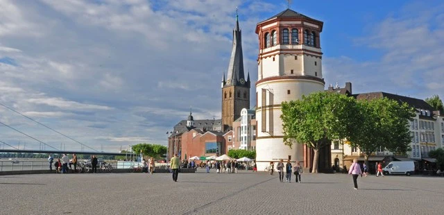 “A squat tower is all that remains of the palace built by the Berg family, which ruled Düsseldorf for more than five centuries.”